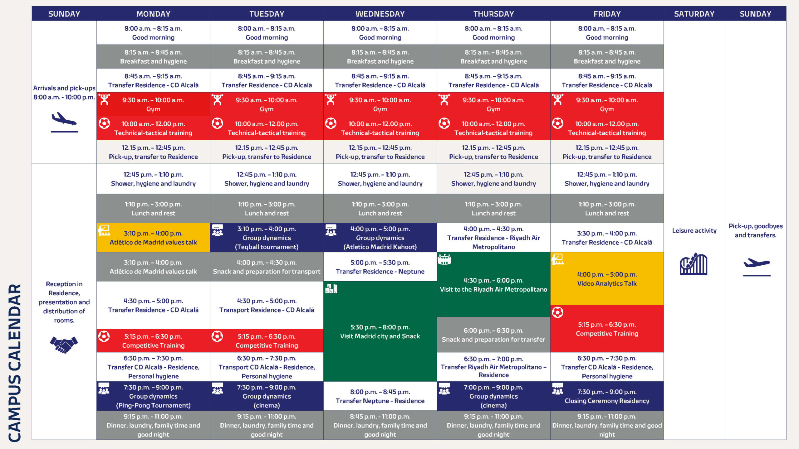 The campus will take place at the official Sports Center of the Atletico de Madrid Academy.